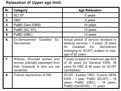 iii. Trained Apprentice of SBI: Relaxation in upper age limit will be applicable to trained Apprentice of SBI who has completed the apprenticeship